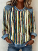 Women's Vintage Striped Textured Patchwork Art Sweatshirt