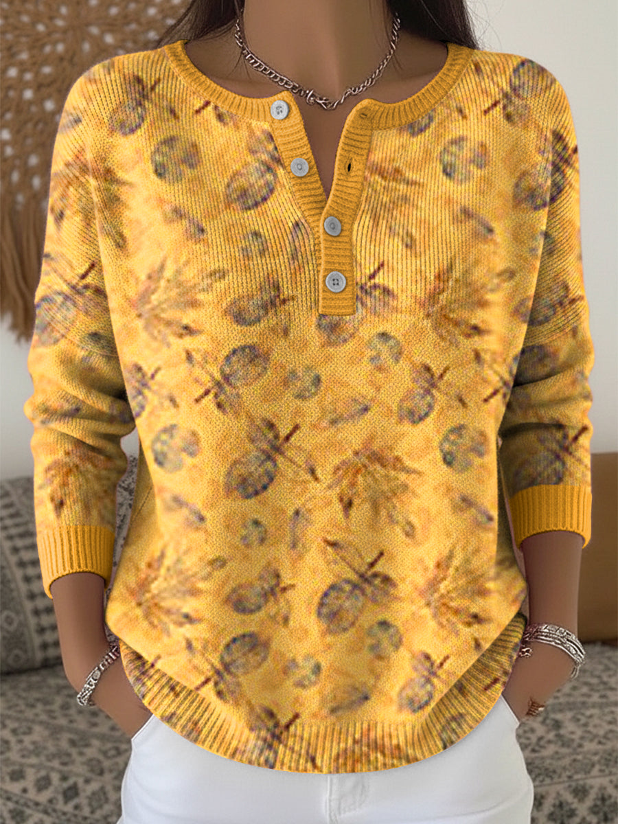Women's Vintage Thanksgiving Abstract Autumn Leaf Art V-Neck Top