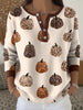 Women's Vintage Thanksgiving Leopard Print Pumpkin Art V-Neck Top