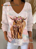 Women's West Highland Cow Print V-Neck Ribbed Top