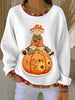 Women's White Cute Thanksgiving Loose-Fit Crewneck Pullover