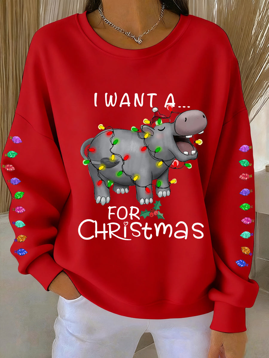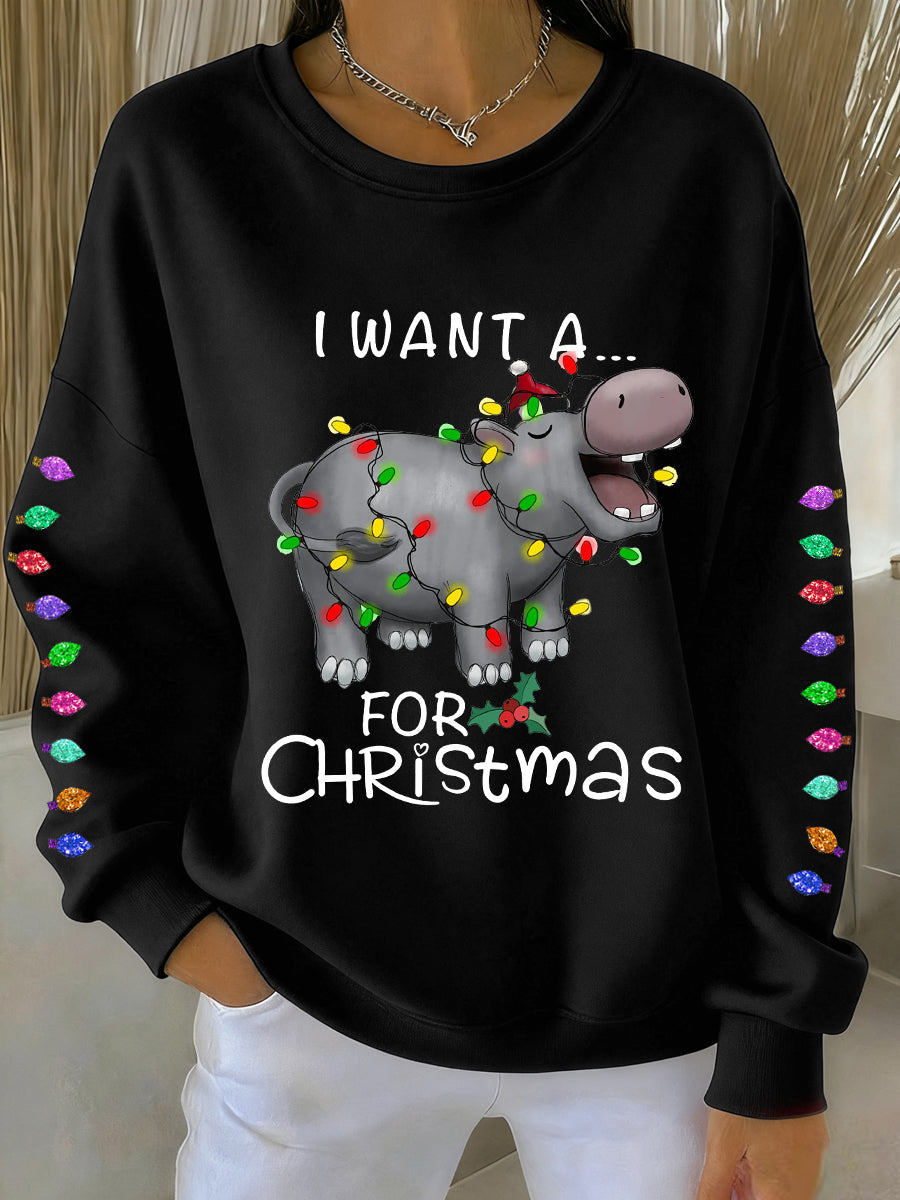 Women's Women's I Want A Hippopotamus For Christmas Casual Sweatshirt